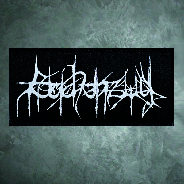 – woven black Logo Patch of “Leichenzug”, merrow border, ca. 12 x 5,7 cm